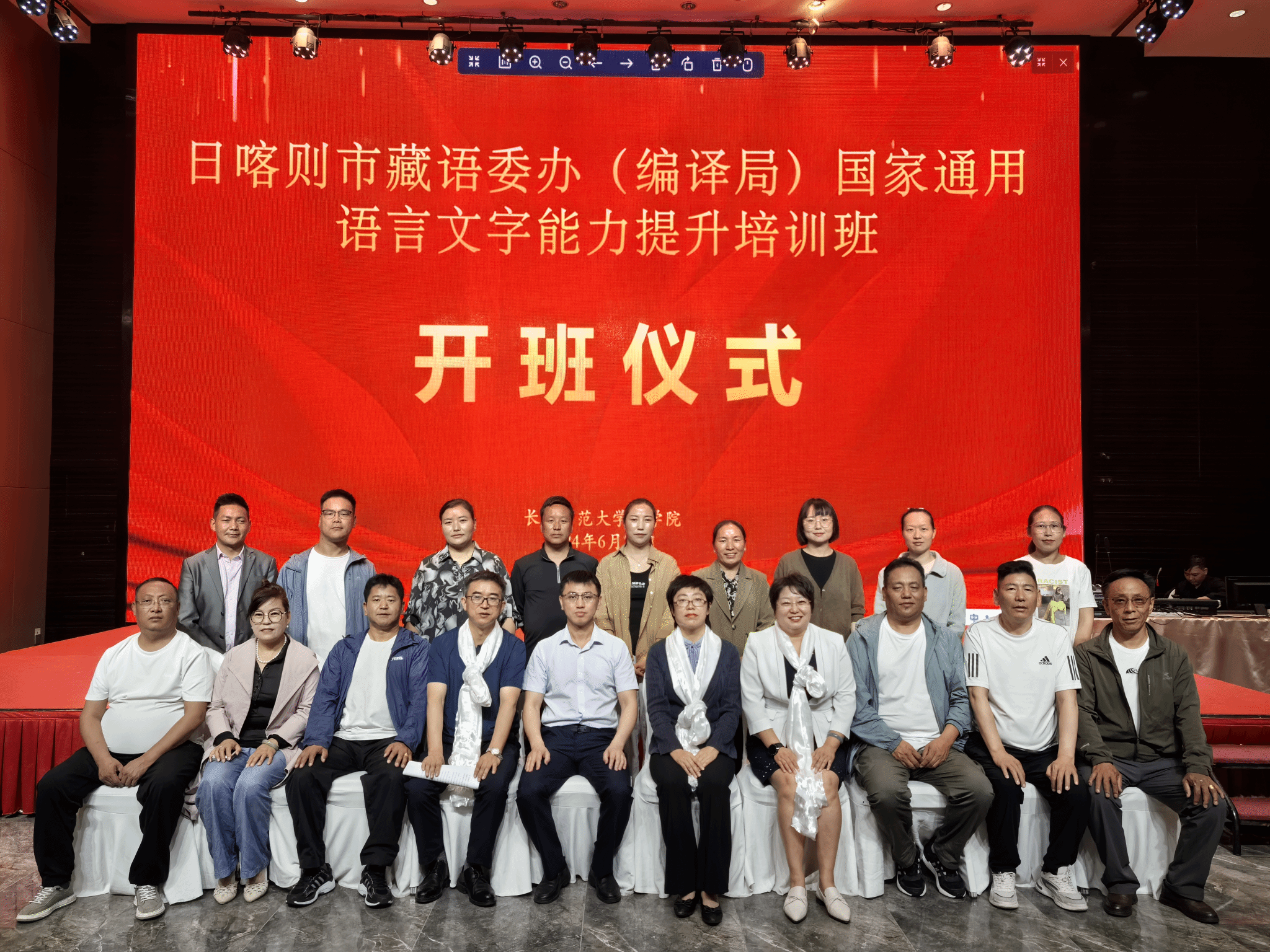 为进一步贯彻落实习近平总书记关于语言文字工作重要指示批示精神和全国语言文字会议的重要要求,6月24日上午,西藏自治区日喀则市藏语委办(编译局)国家通用语言文字能力提升培训项目在我校正式开班。来自日喀则市藏语委编译系统的15名业务骨干参加为期8天的培训活动。