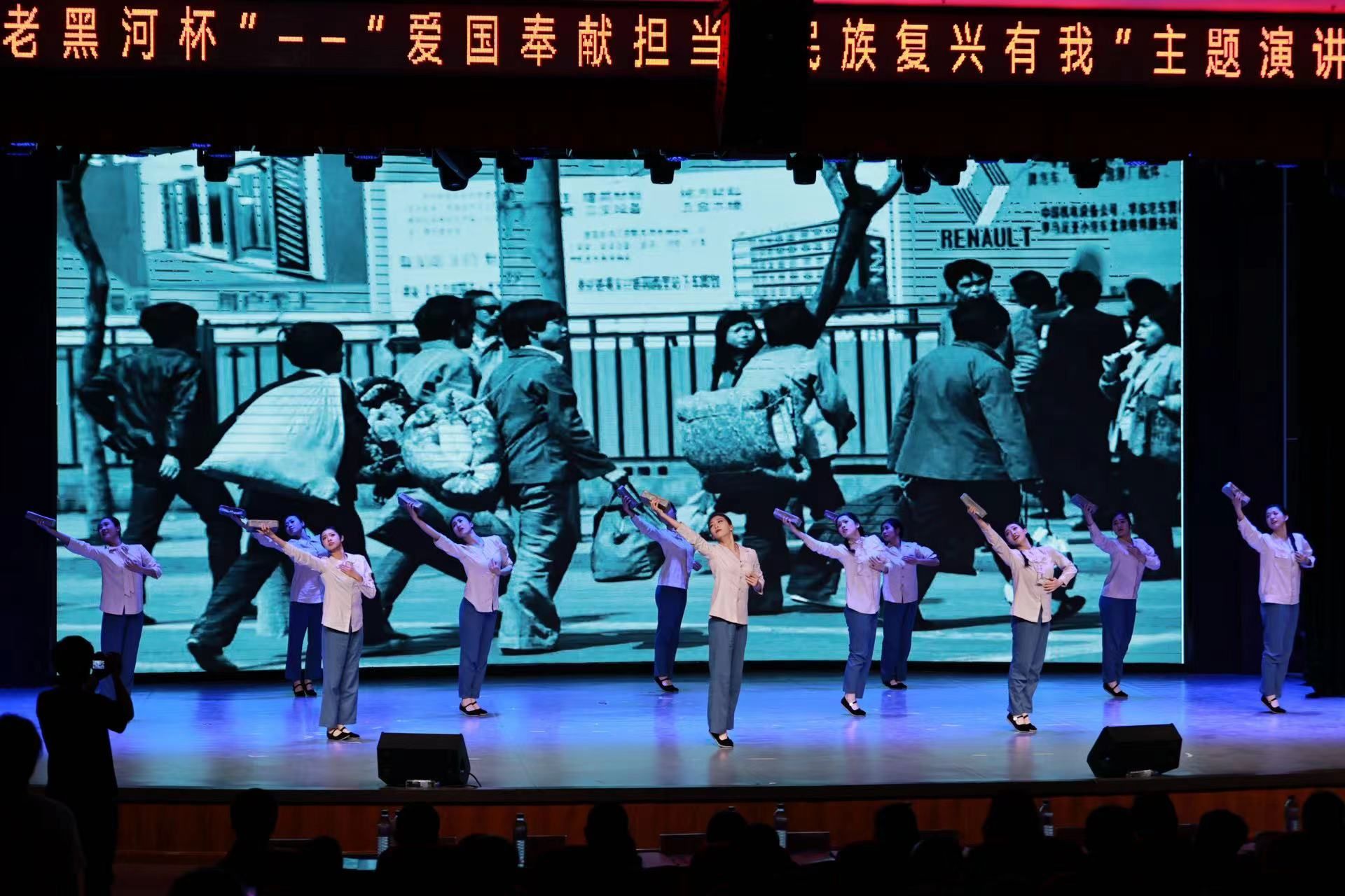 比赛现场,由我校带来的国家艺术基金项目、原创舞蹈《车轮时代》以及舞蹈《雨后》《回家的路并不遥远》,带领全场观众在光影中感受大美吉林的发展与变化。