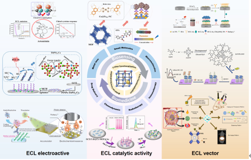 据了解,该篇论文内容是我校吉林省功能生物分子工程研究中心科研团队,联合吉林大学、香港城市大学学者,对金属有机框架(MOFs)在电化学发光(ECL)生物传感器中的最新应用和设计策略进行的探讨。