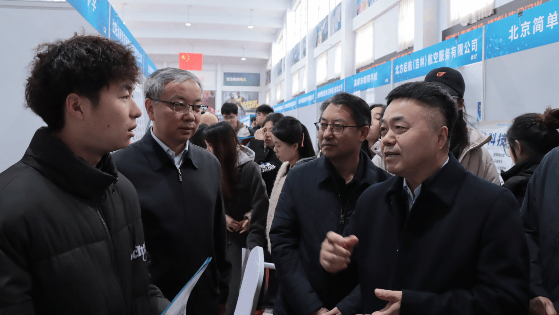 吉林省人力资源和社会保障厅就业促进处处长禄民,吉林省就业服务局职业介绍处处长、创业处负责人刘亚丽,吉林省人力资源和社会保障厅就业促进处副处长董明阳,我校相关学院负责人到招聘会现场观摩。