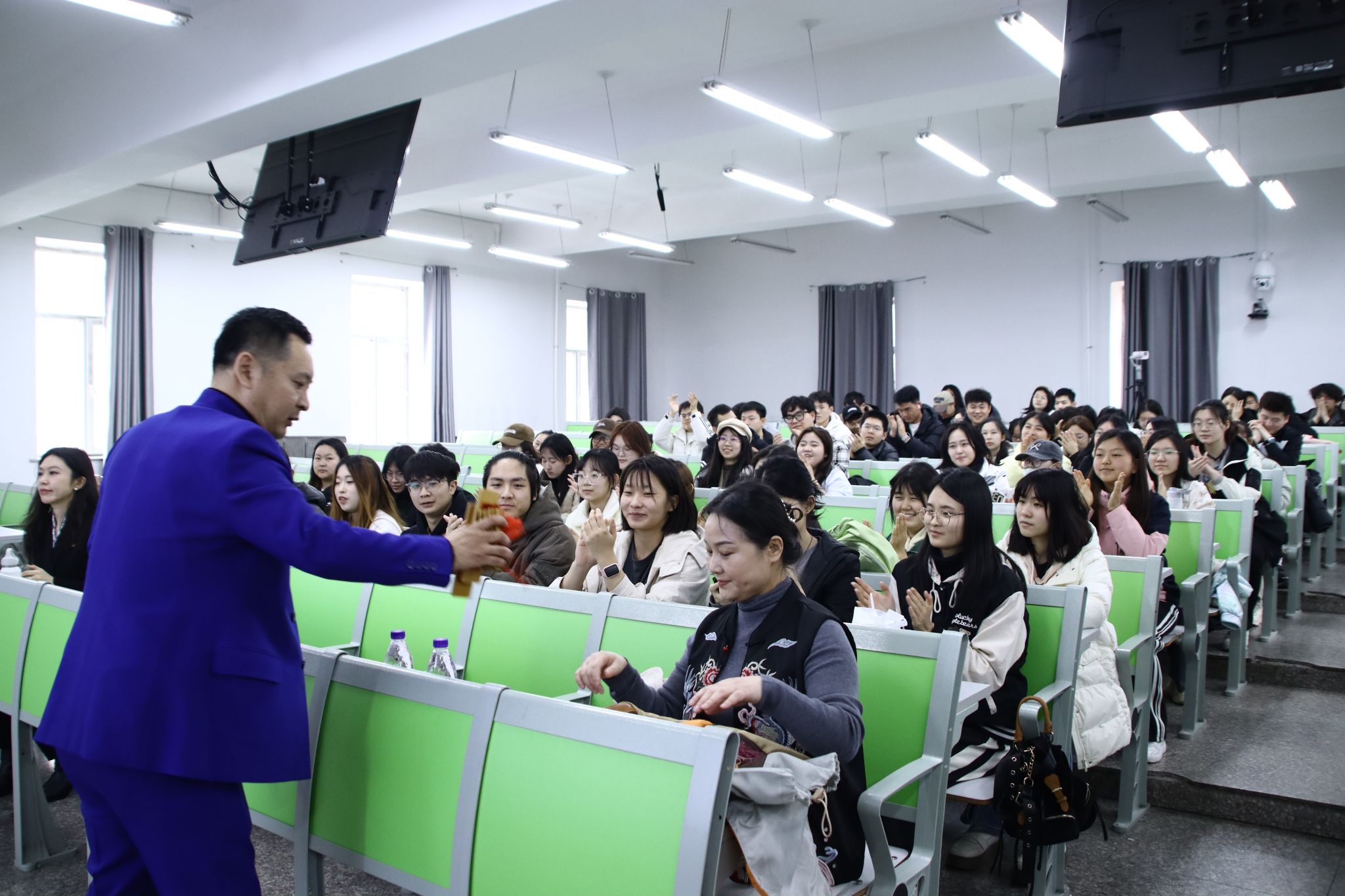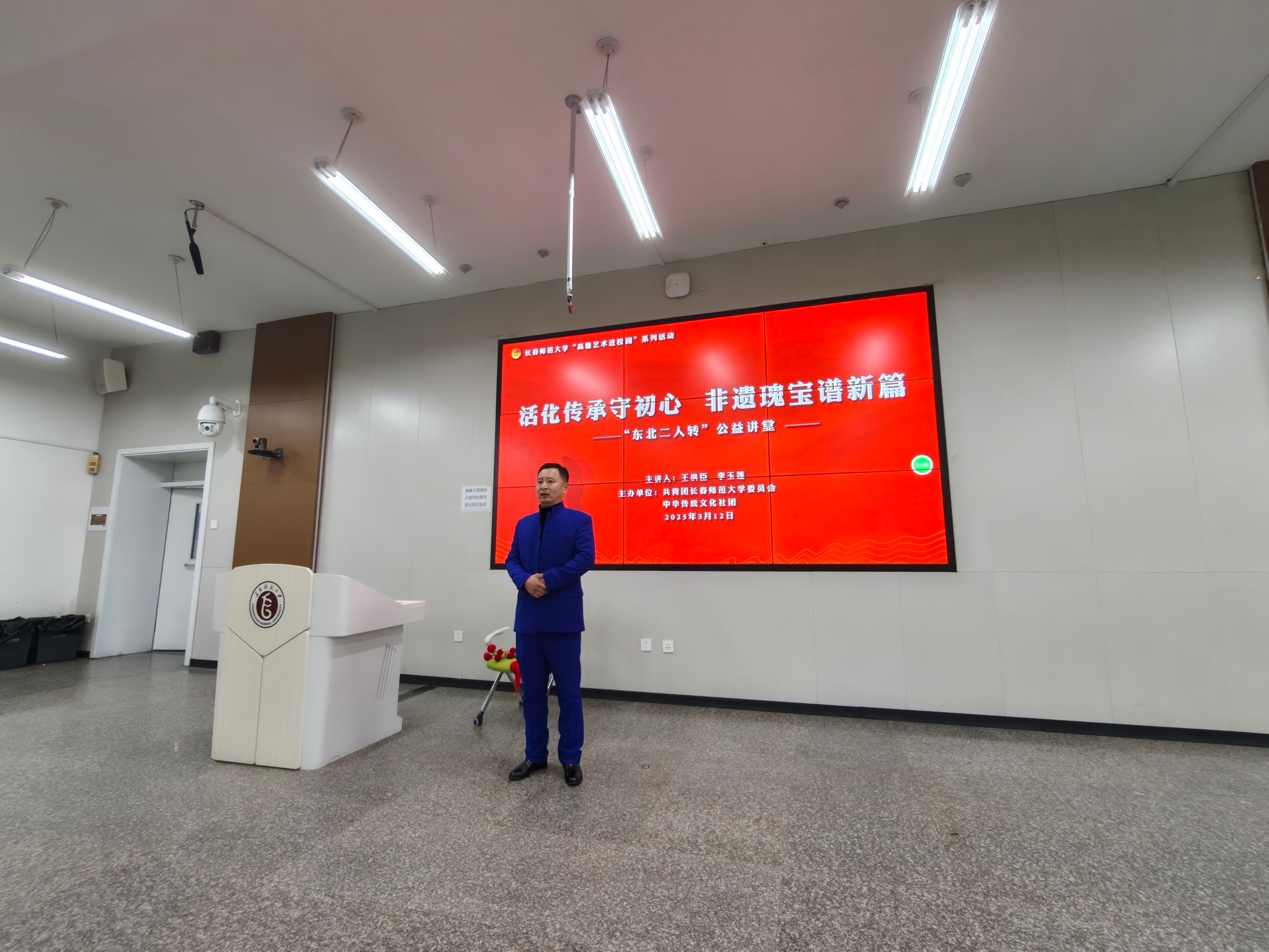 3月12日,为弘扬中华优秀传统文化,推动非物质文化遗产活态传承,校团委依托中华传统文化社团开展 “高雅艺术进校园———东北二人转”公益课堂活动,特邀吉林省非物质文化遗产代表性传承人王洪臣、吉林省戏曲剧院李玉莲两位老师授课。