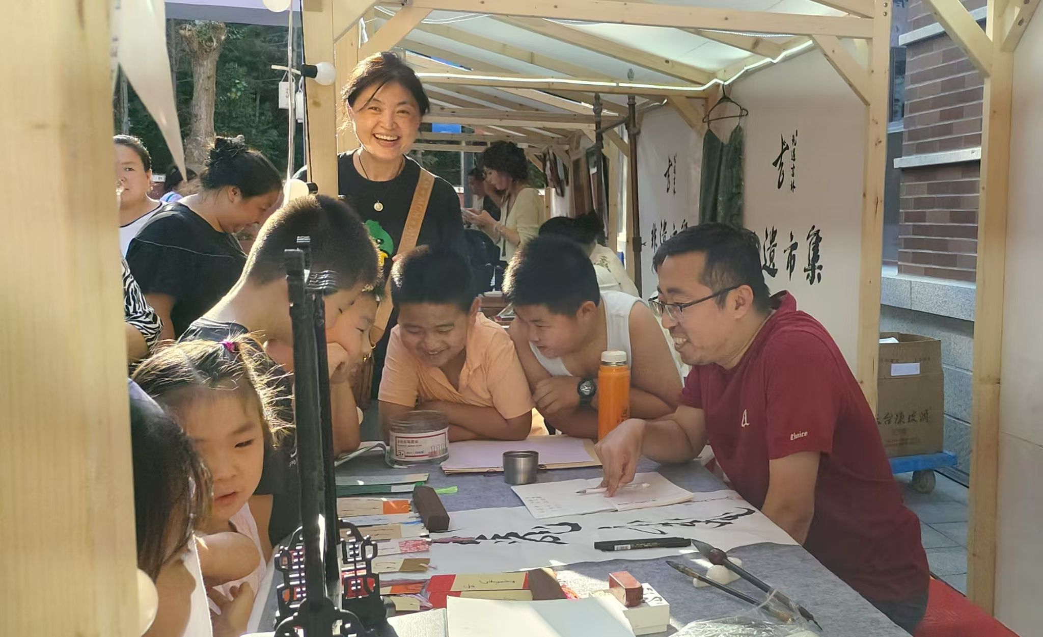 在市集现场,刘国宁详细了解项目展示情况,对团队的非遗保护与推广工作给予肯定,鼓励大家持续做好满语文非遗的研究、保护与传播,让满语文非遗项目在新时代焕发新活力。